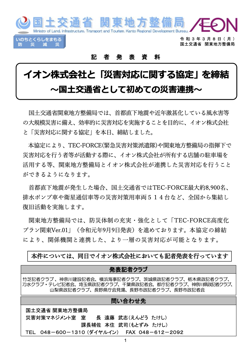 イオンと国土交通省関東地方整備局が