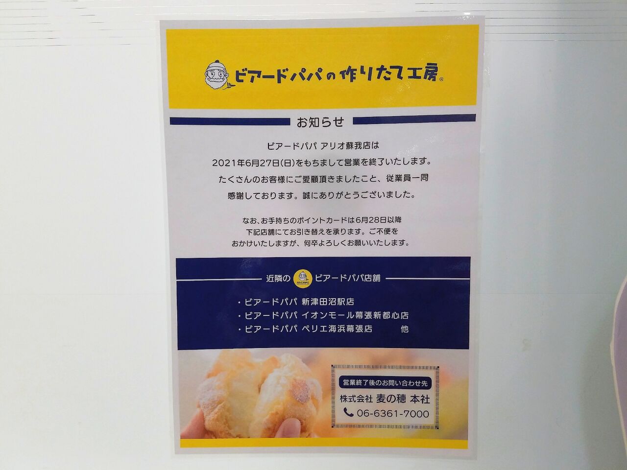 店 名:ビアードパパ アリオ蘇我店(beard papa)