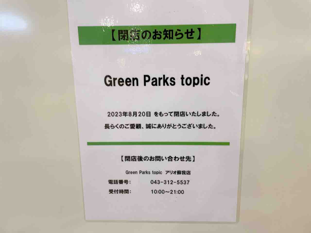 店 名:Green Parks topic(グリーンパークス トピック)