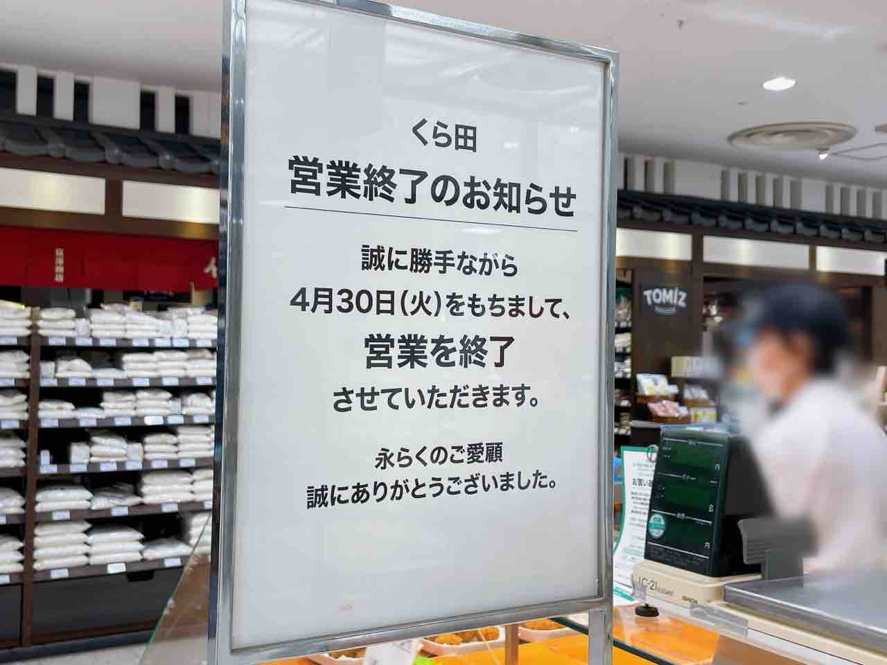 4月30日をもって閉店。