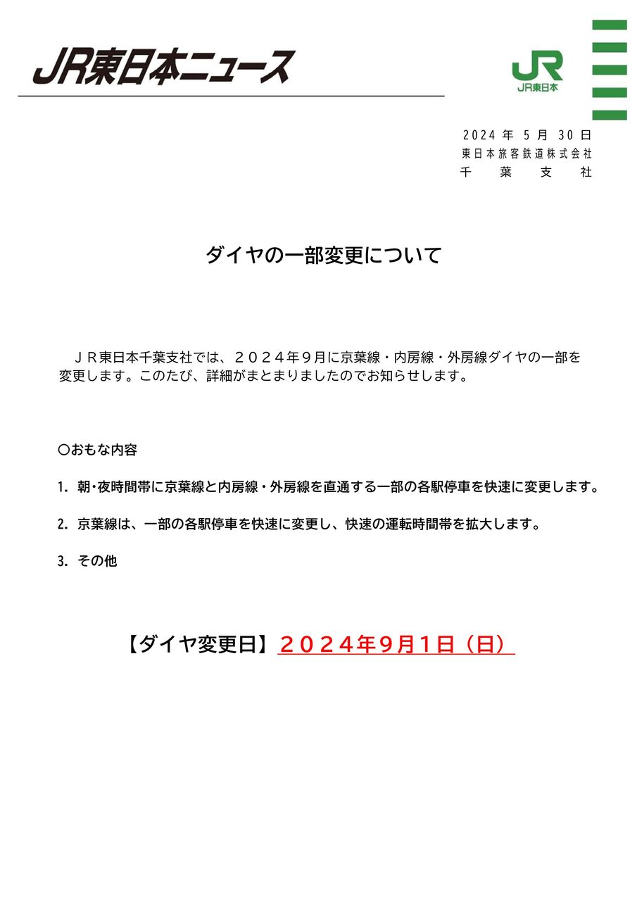 通勤快速とか、いろいろ変更があったけど