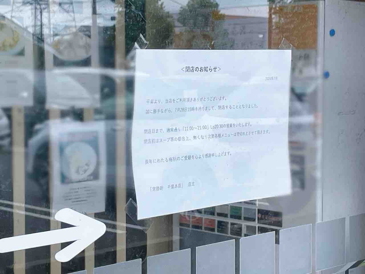 入口に閉店のお知らせが貼ってある。涙