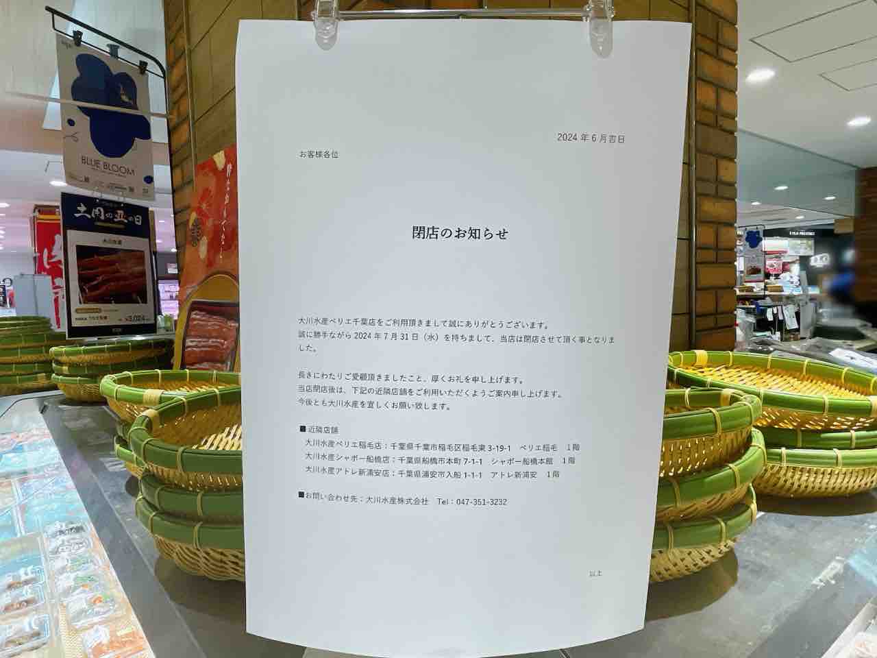 『大川水産』に閉店のお知らせ。