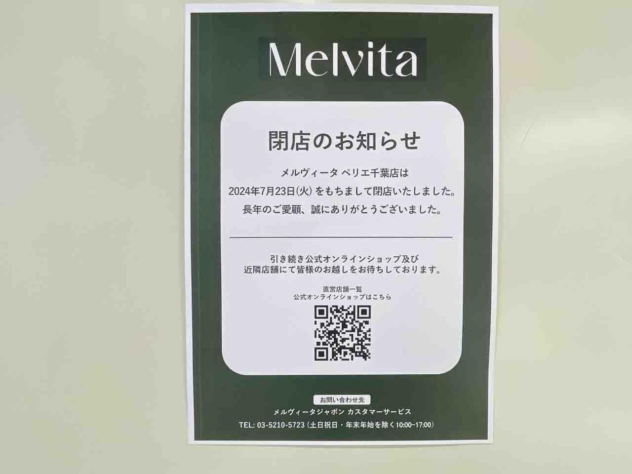 『Melvita(メルヴィータ)』が閉店してる。汗