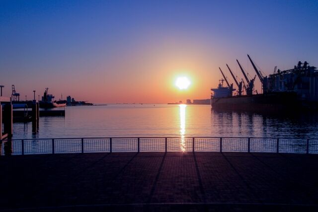日が沈んでくる頃千葉港のポートパークへ。
